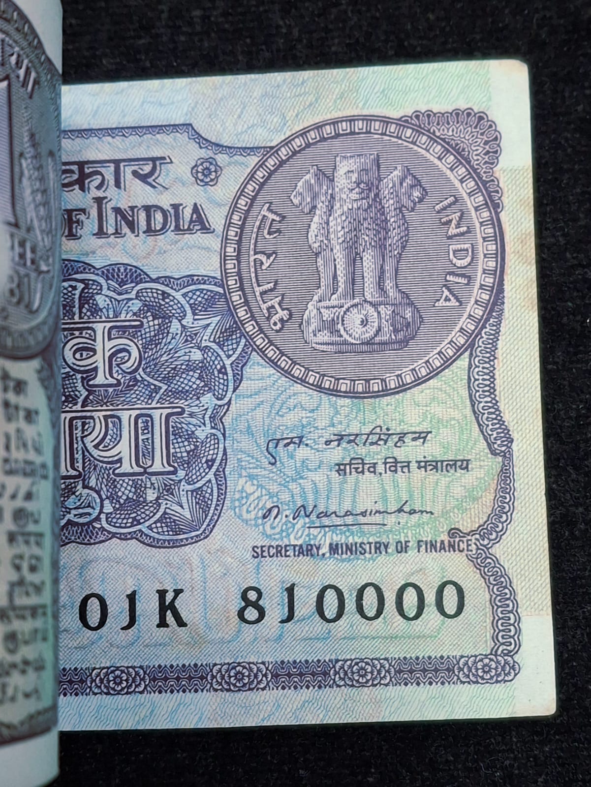 1 RUPEES 1981 RARE BIG COIN (100 NOTE ) SERIAL PACKET RARE GOVERNOR *M.NARSHIMHA*