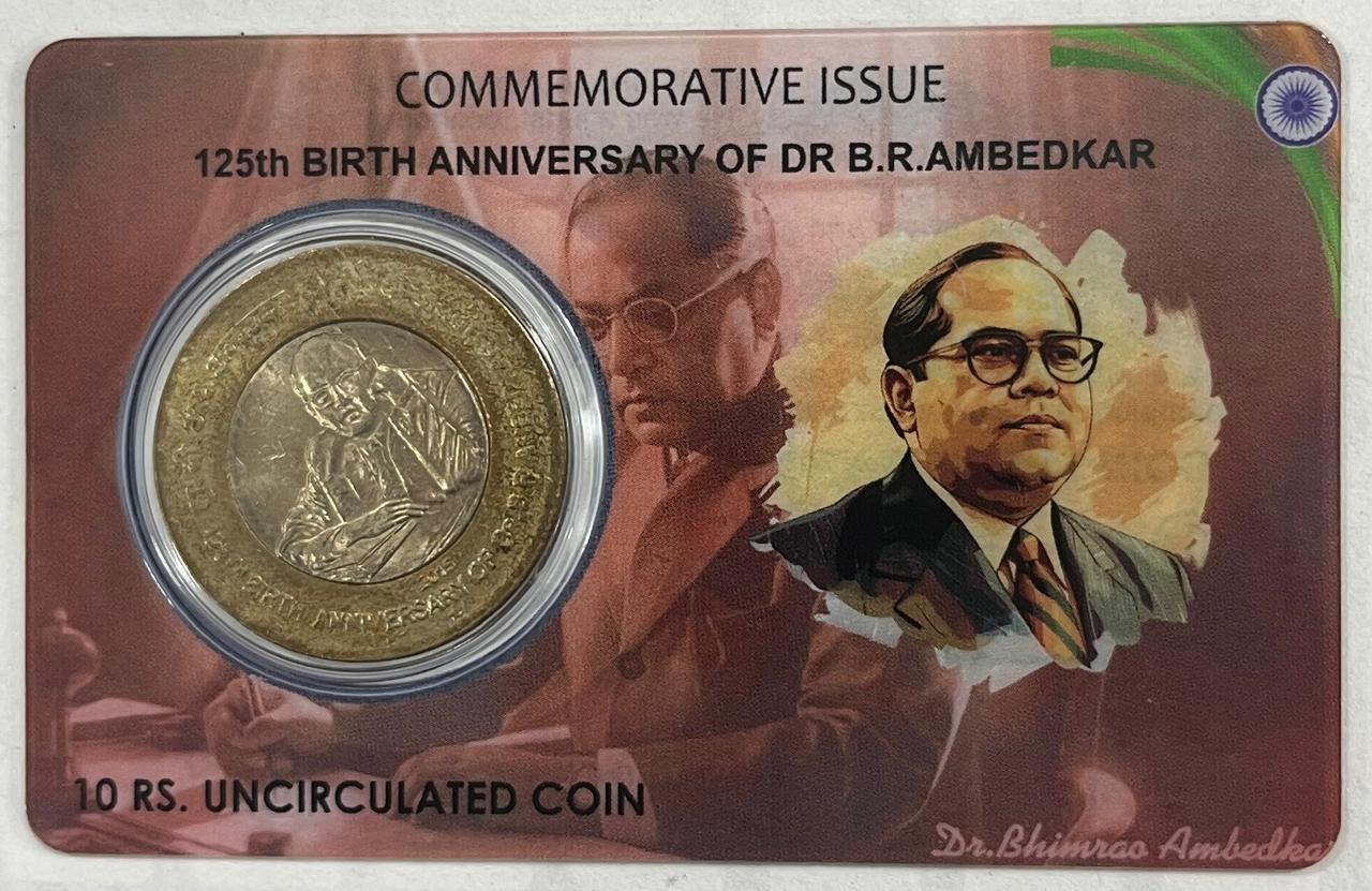 10 Rs ( 125th BIRTH ANNIVERSARY OF DR B.R. AMBEDKAR COMMEMORATIVE ISSUE RARE COIN CARD SPECIAL EDITION