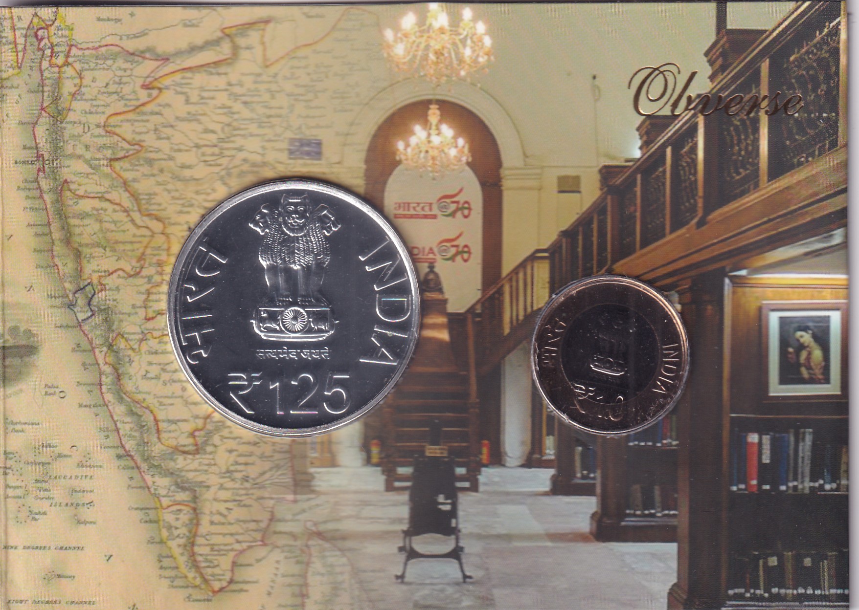 125 YEARS – NATIONAL ARCHIVES OF INDIA 2016 MUMBAI MINT RARE 2 COINS ((UNC SET))