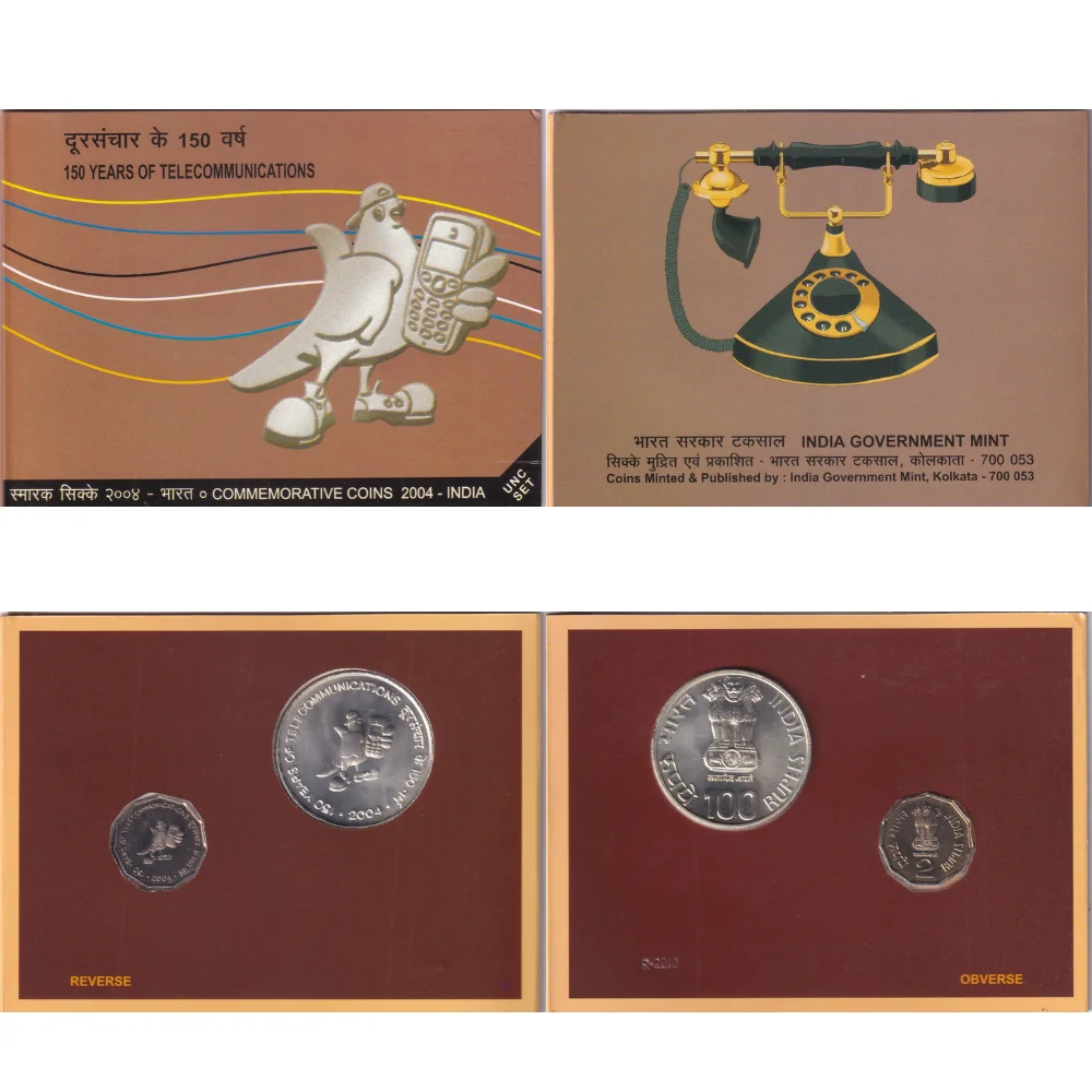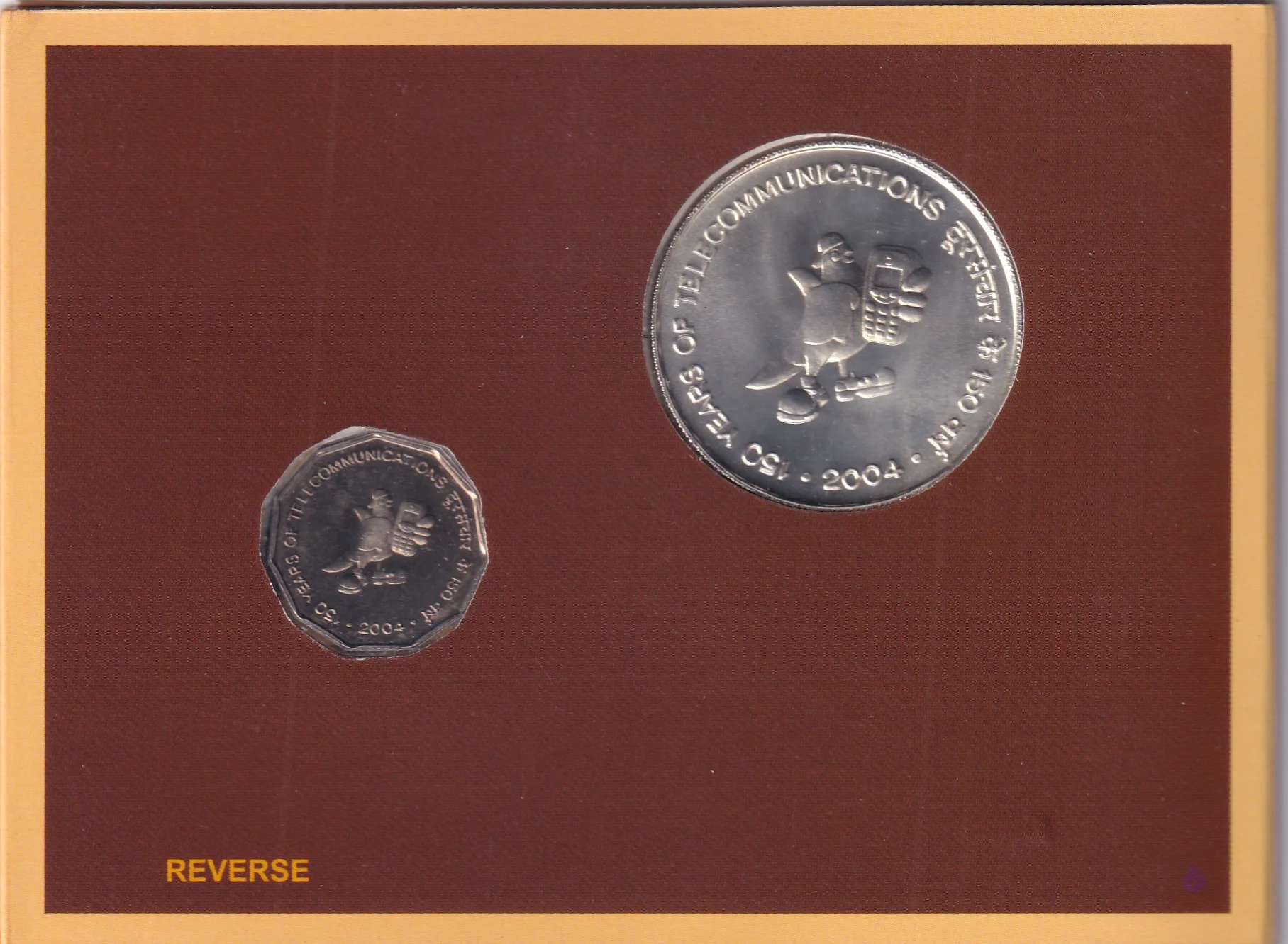 150 Years of Telecommunications -2004 Rare Kolkata UNC 2 Coin Set
