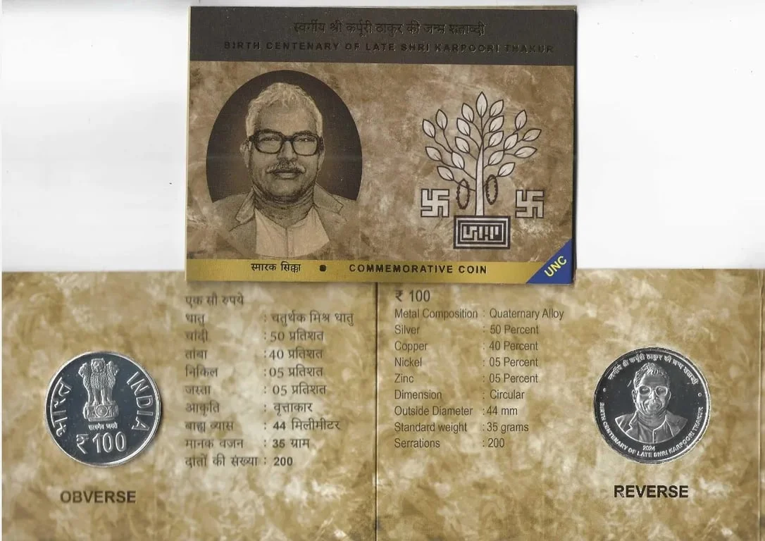 2024 Birth Centenary of Late Shri Karpoori Thakur (Denomination of `100) UNC -Folder Packing