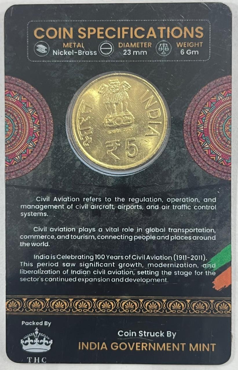 5 Rs ( 100 YEARS OF CIVIL AVIATION ) COMMEMORATIVE ISSUE RARE COIN CARD SPECIAL EDITION