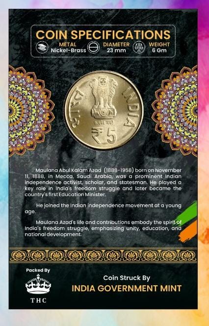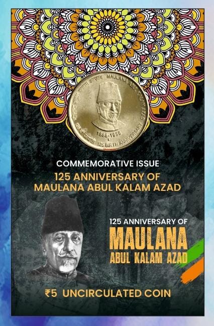 5 Rs. 125th Anniversary of Maulana Abdul Kalam Azad rare Commemorative Coin Card Special Edition
