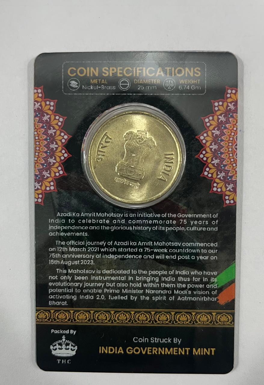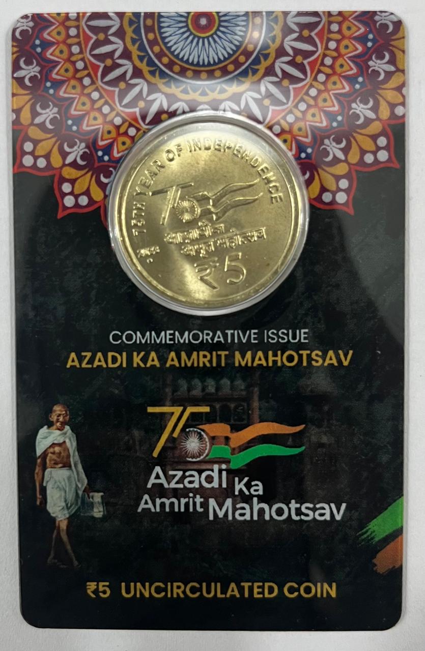 5 Rs. AZADI KA AMRIT MAHOTSAV rare Commemorative Coin Card Special Edition