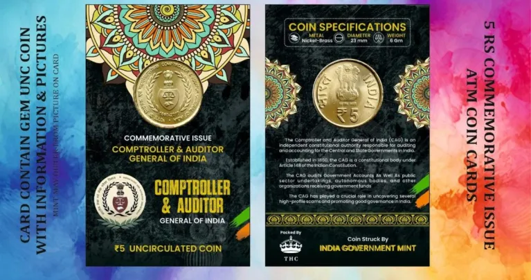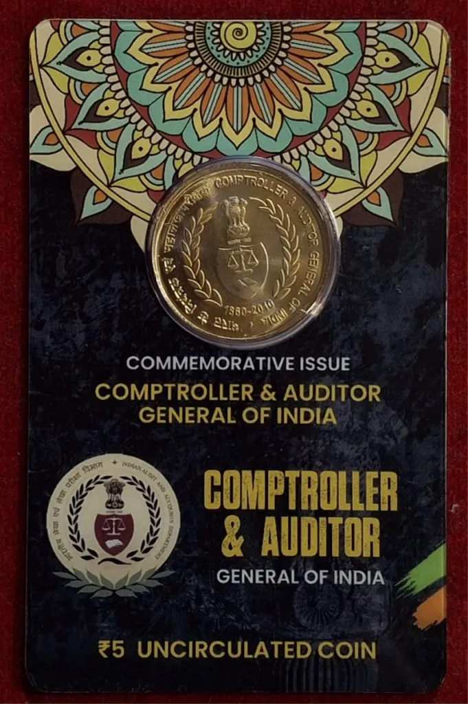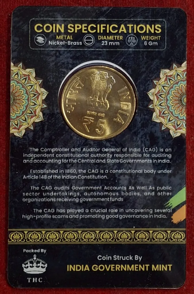 5 Rs. COMPTROLLER & AUDITOR rare Commemorative Coin Card Special Edition