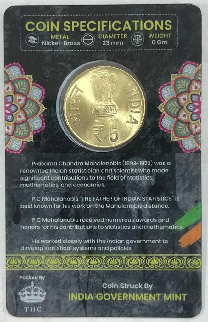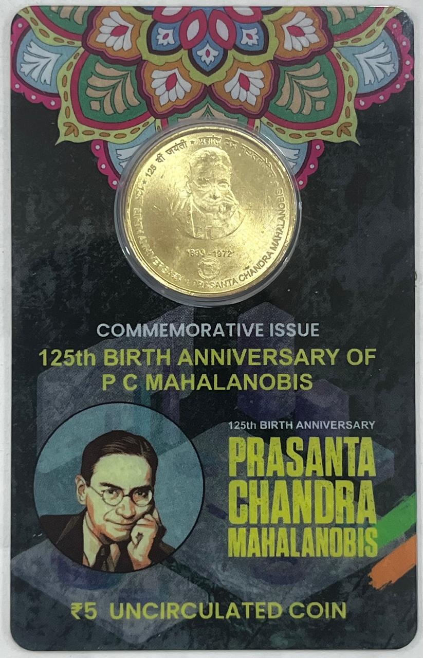 5 Rs PRASANTA CHANDRA MAHAL ANOBIS COMMEMORATIVE ISSUE RARE COIN CARD SPECIAL EDITION