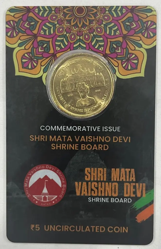 5 Rs SHRI MATA VAISHNO DEVI SHRINE BOARO COMMEMORATIVE ISSUE RARE COIN CARD SPECIAL EDITION