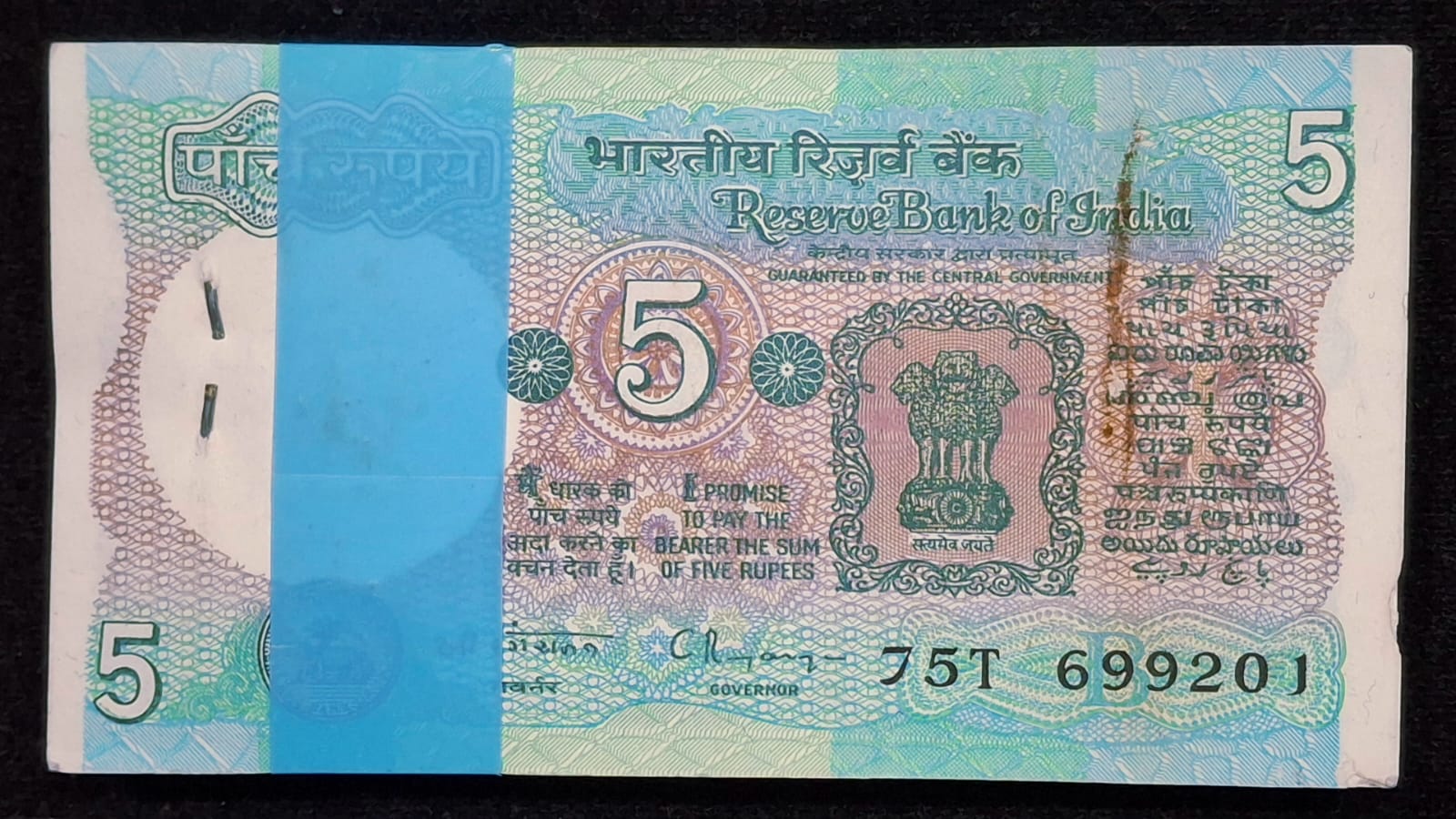 5 RUPEES TRACTOR GOVERNOR C.RANGARAJAN RARE ( 100 NOTE ) UNC SERIAL PACKET