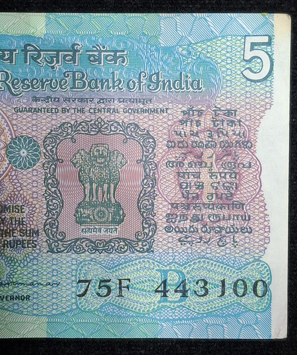 5 RUPEES TRACTOR GOVERNOR S.VENKITARAMAN RARE ( 100 NOTE ) UNC SERIAL PACKET
