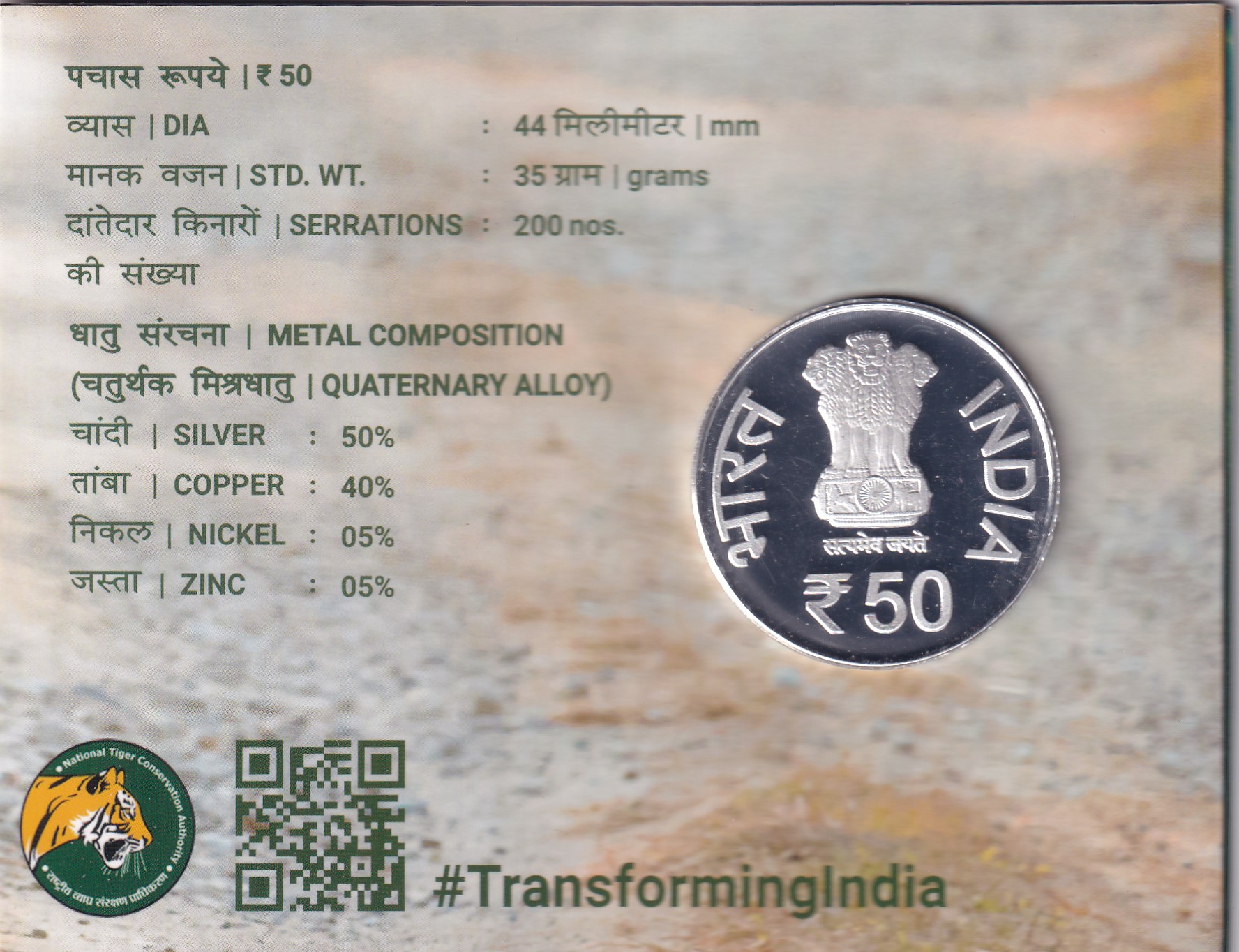 50 YEARS PROJECT TIGER-2023 HYDERABAD MINT RARE 1 COIN ((PROOF SET))