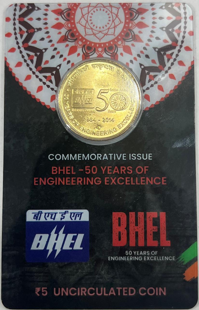 5Rs BHEL -50 YEARS OF ENGINEERING EXCELLENCE COMMEMORATIVE ISSUE RARE COIN CARD SPECIAL EDITION