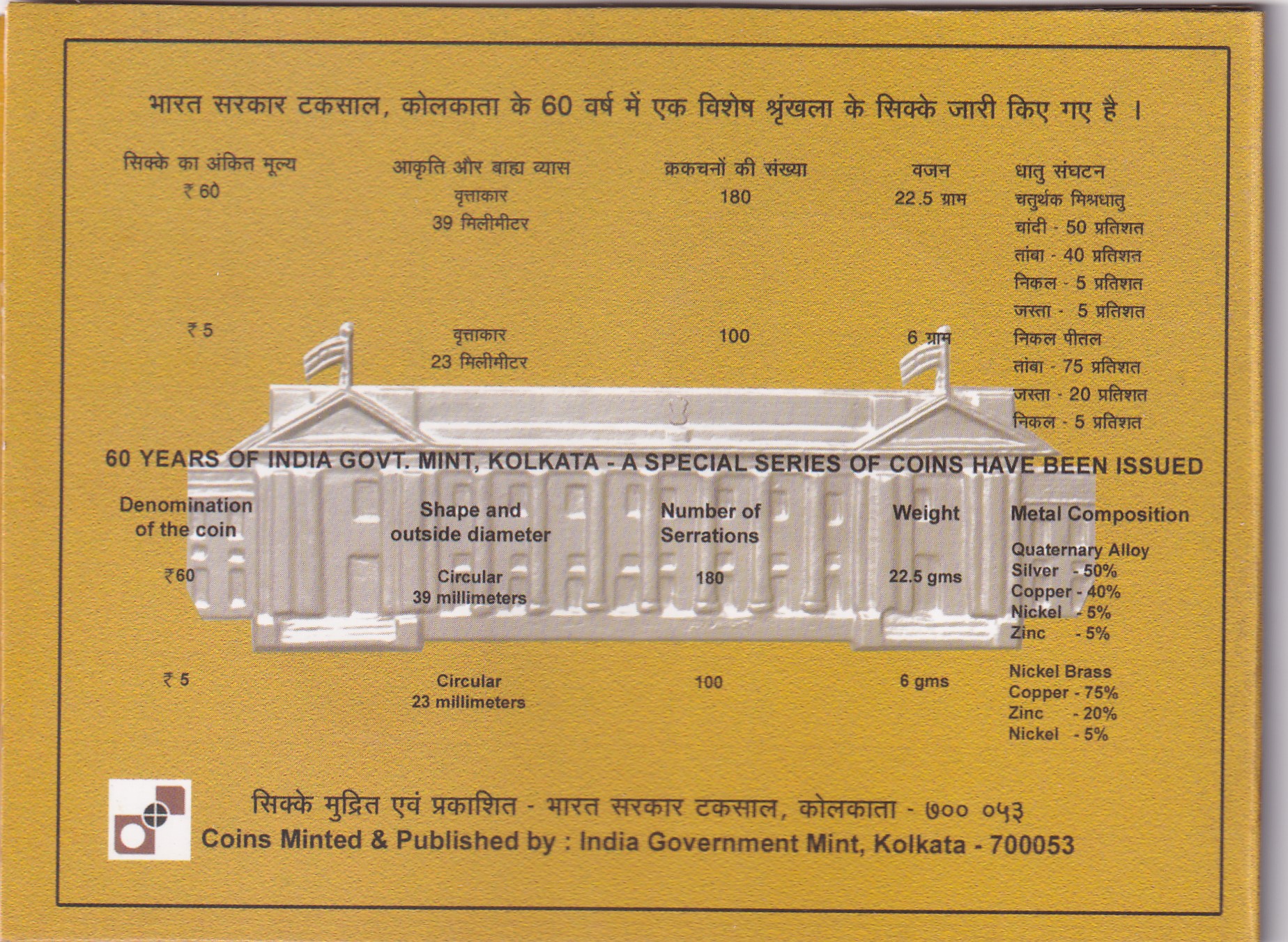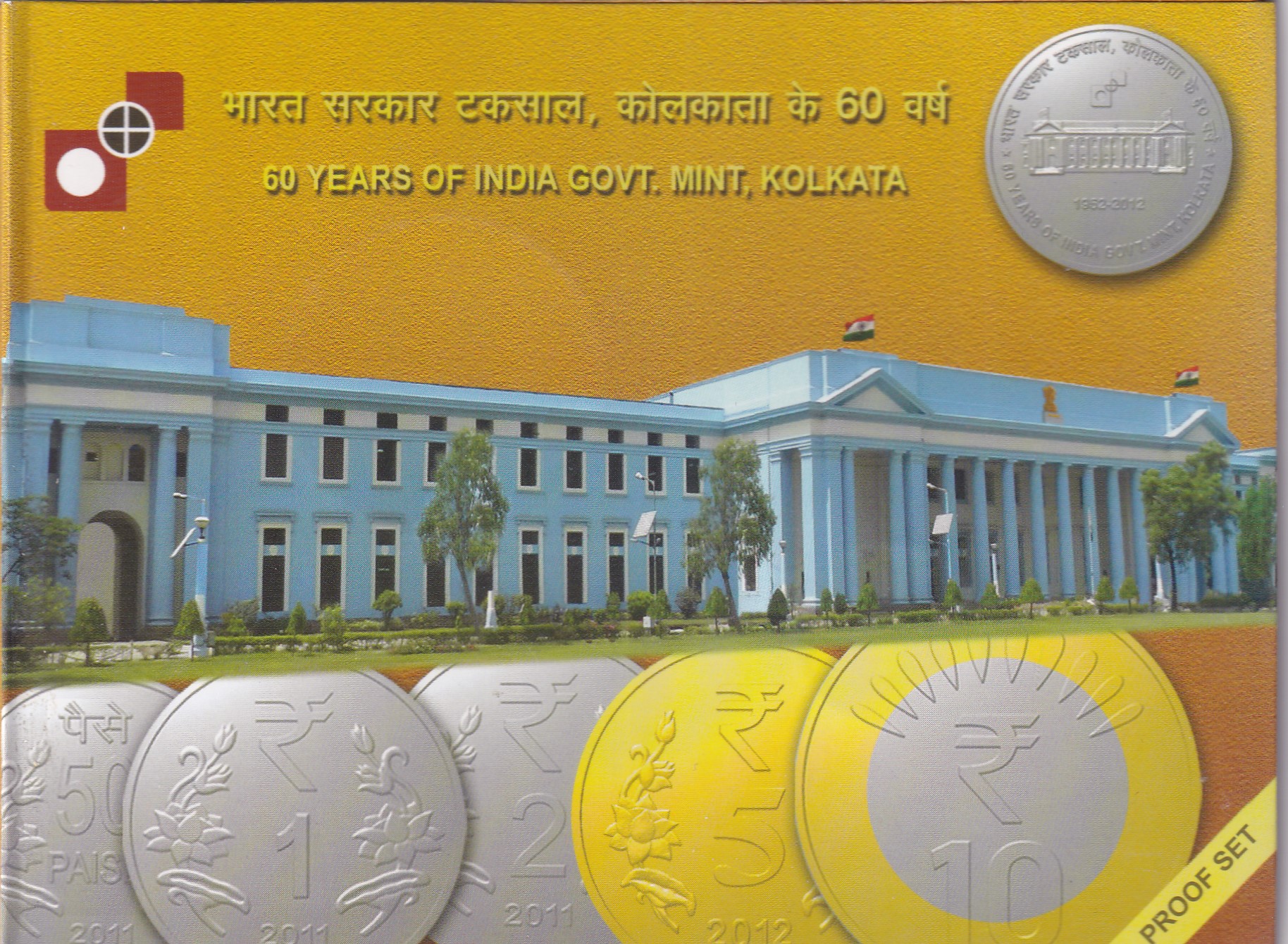 60 YEARS OF INDIA GOVT. – 2012 KOLKATA MINT RARE 2 COIN ((PROOF SET))
