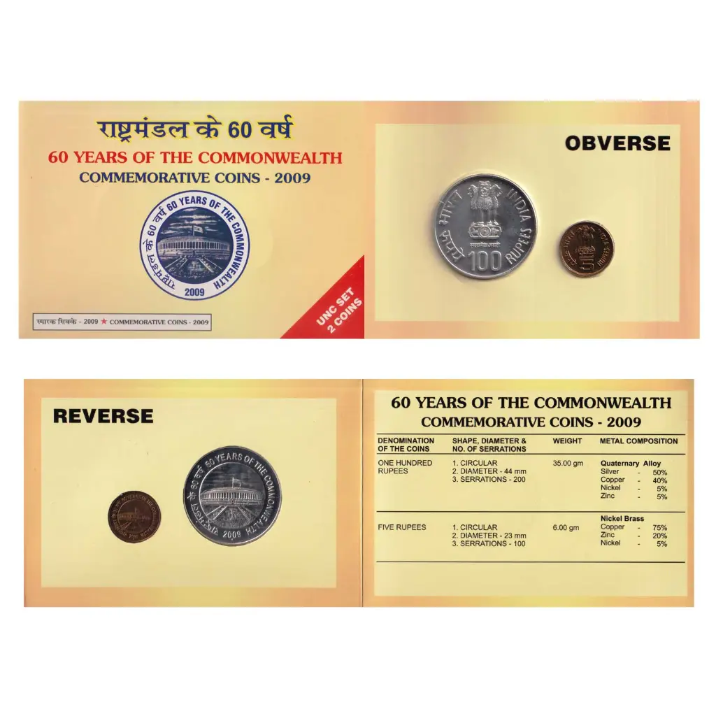 60 YEARS OF THE COMMONWEALTH – 2009 MUMBAI MINT RARE 2 COINS ((UNC SET))