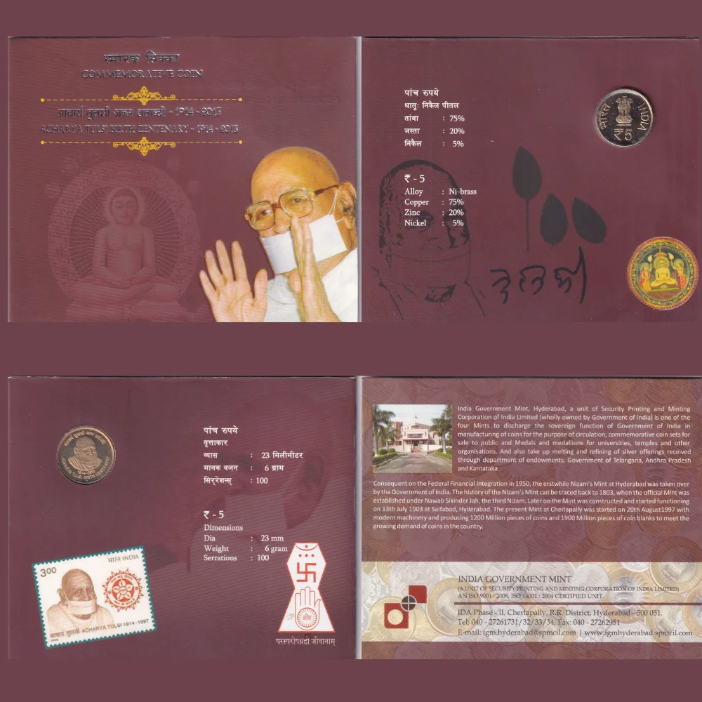 Acharya Tulsi Birth Centenary 1914-2013 Rare commemorative Hyderabad Mint UNC Coin Set