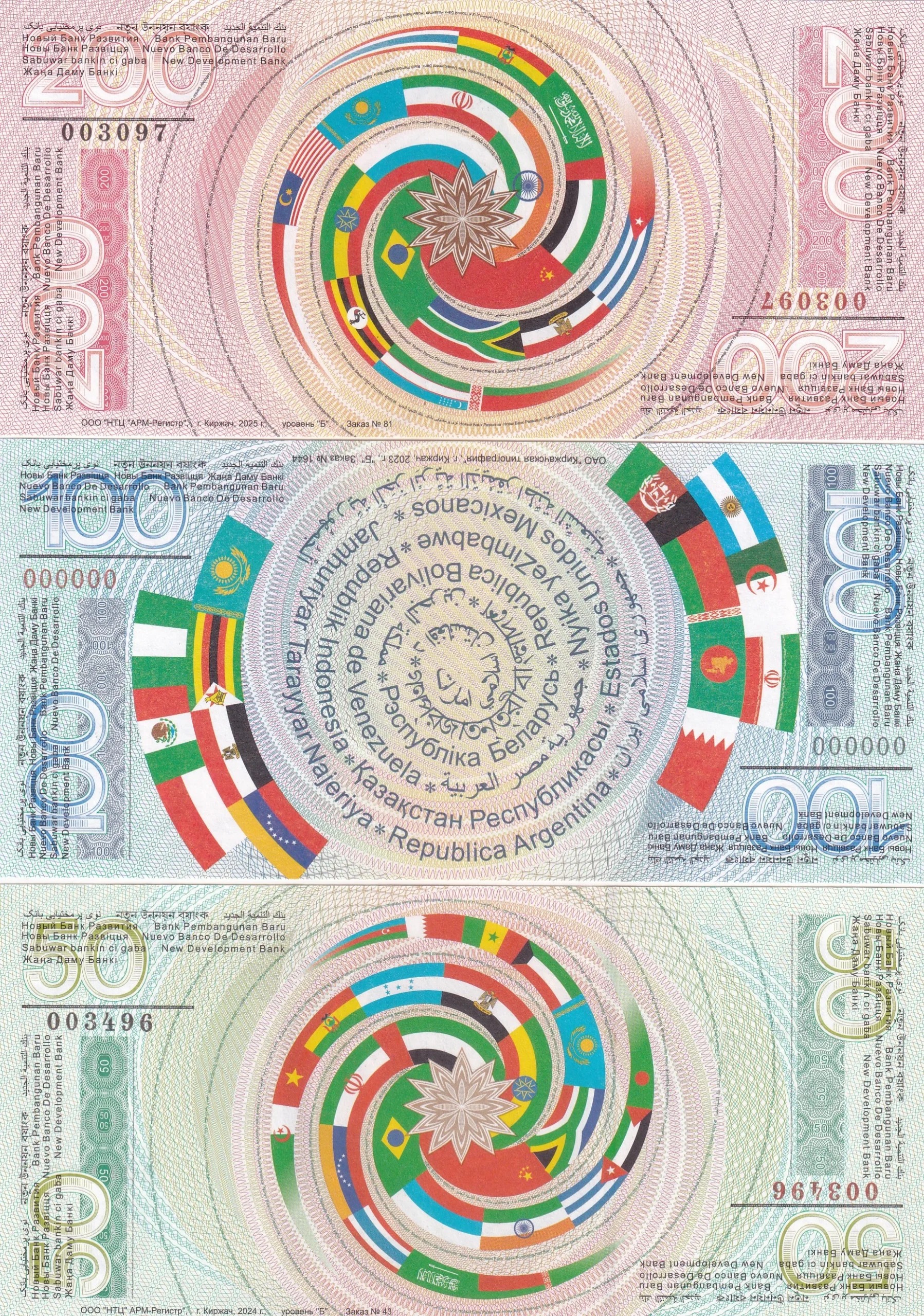 BRICS Test Banknote Series Issued By Russia 50 100 and 200 Ultra Unique and Rare ( 3 NOTE SET)