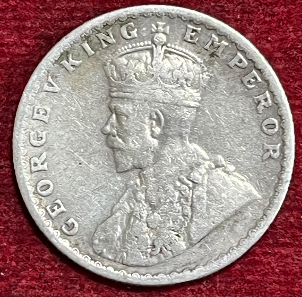BRITISH INDIA 1/2 RUPEES -GEORGE V 1919 RARE SILVER COIN #V-324