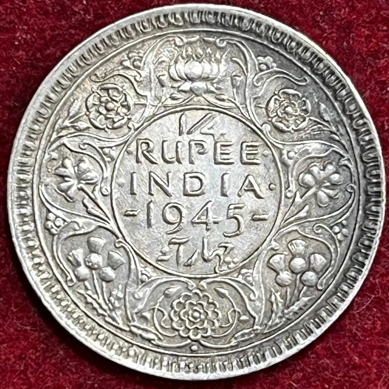 BRITISH INDIA 1/4 RUPEES 1945 GEORGE VI RARE SILVER COIN #V-352