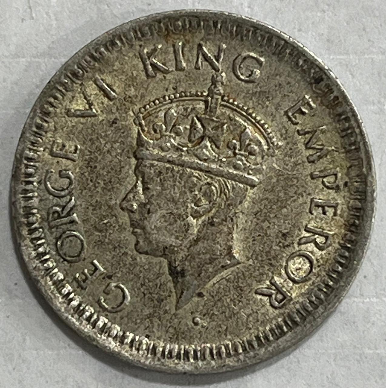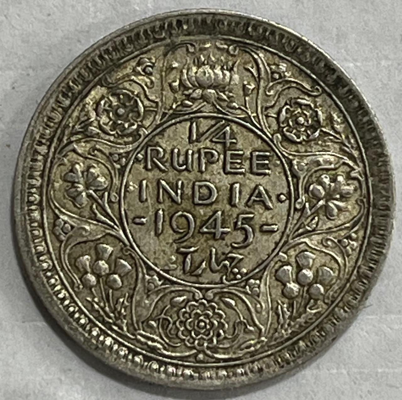 BRITISH INDIA 1/4 RUPEES 1945 GEORGE VI RARE SILVER COIN #V-354