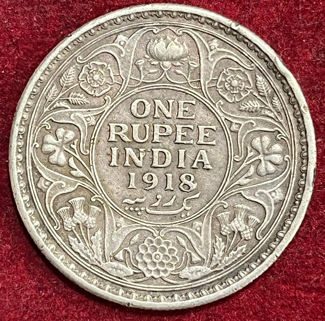 BRITISH INDIA 1 RUPEES 1918 -GEORGR V RARE COIN #V-301 (Copy)