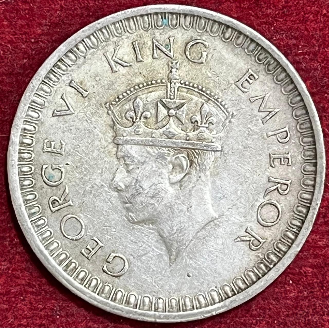 BRITISH INDIA 1 RUPEES GEORGE VI 1942 RARE SILVER COIN #V-344
