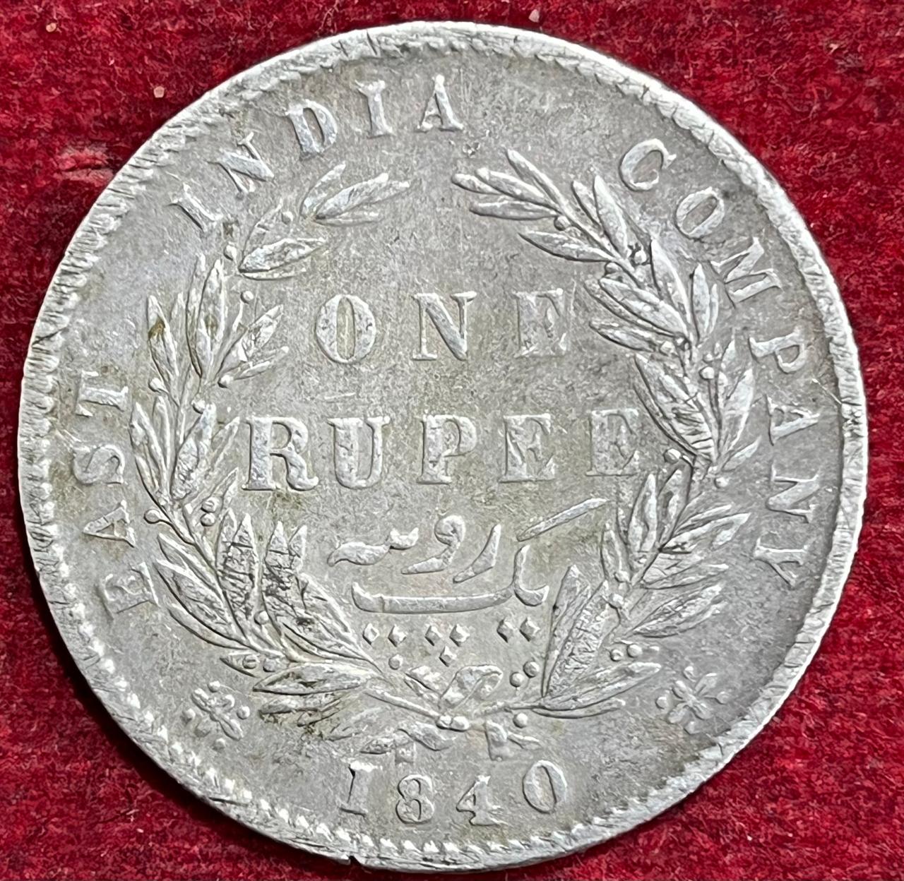 BRITISH INDIA 1 RUPEES -VICTORIA 1840 RARE SILVER COIN #V-305