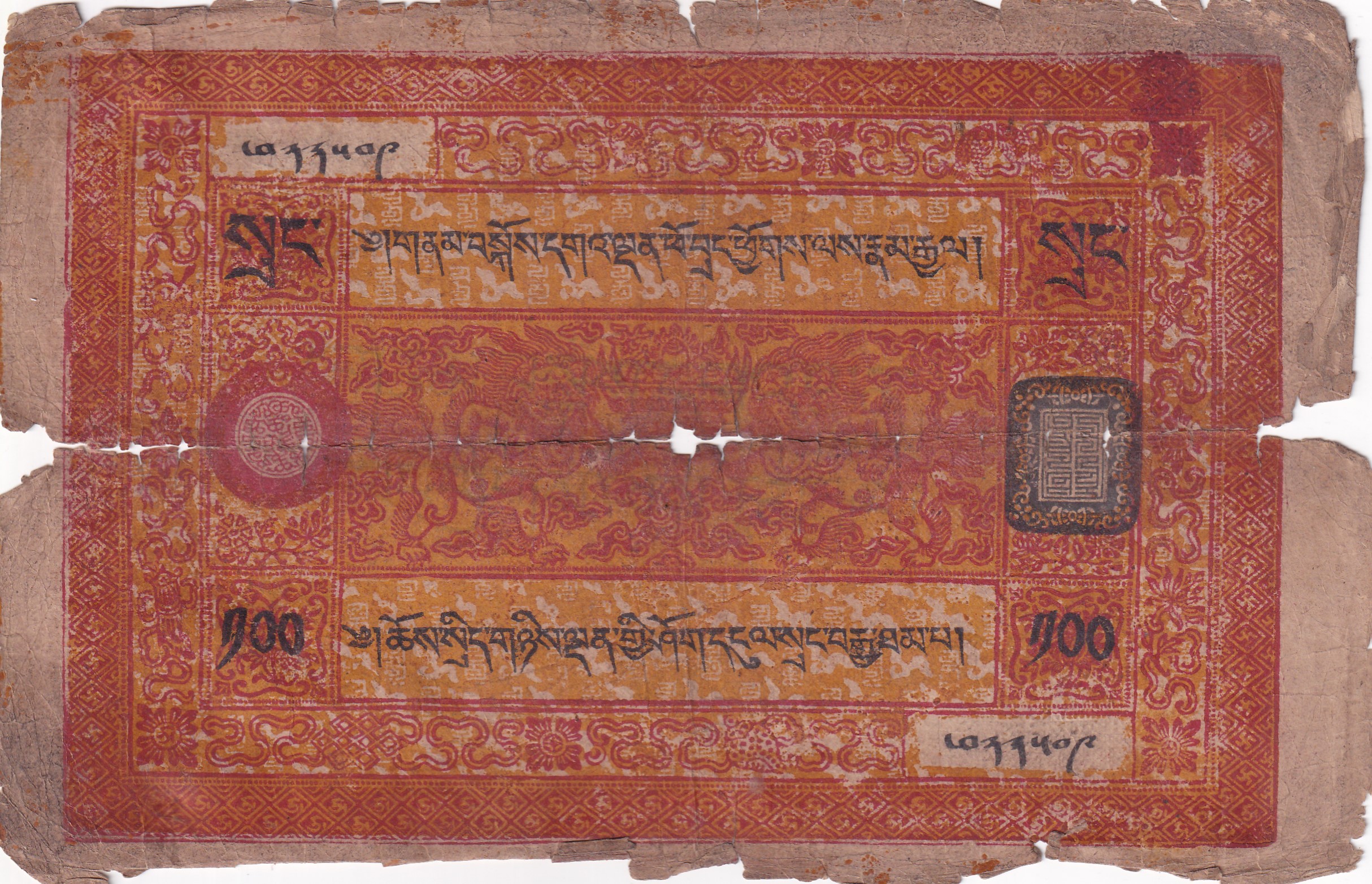 CHINA TIBET 100 SRANG EXTREMLY RARE NOTE