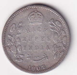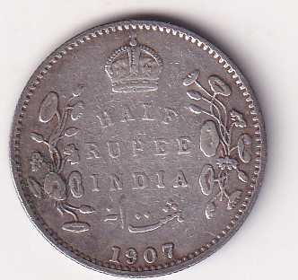 India – British ½ Rupee 1907 – Edward VII Rare Silver Coin #V-421