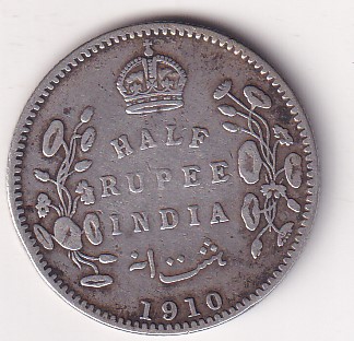 India – British ½ Rupee 1910 – Edward VII Rare Silver Coin #V-423