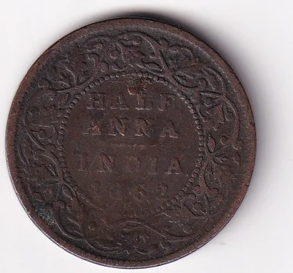 British India 1/2 Annas (1862) Victoria Rare Coin