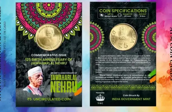 5 Rs. JAWAHARLAL NEHRU rare Commemorative Coin Card Special Edition
