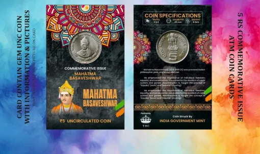 5 Rs. MAHATMA BASAVESHWAR Rare Commemorative Coin Card Special Edition