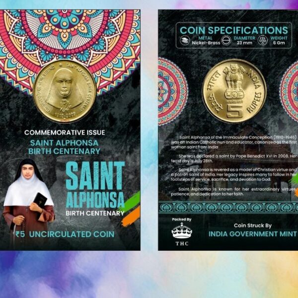 5 Rs. Saint Alphonsa Birth centenary rare Commemorative Coin Card Special Edition