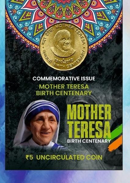5 Rs. Mother Teresa Birth Centenary are rare Commemorative Coin Card Special Edition