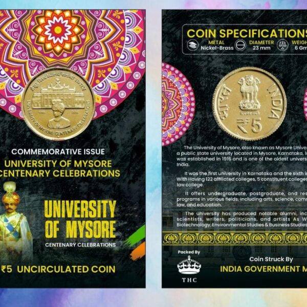 5 Rs. UNIVERSTIY OF MYSORE rare Commemorative Coin Card Special Edit