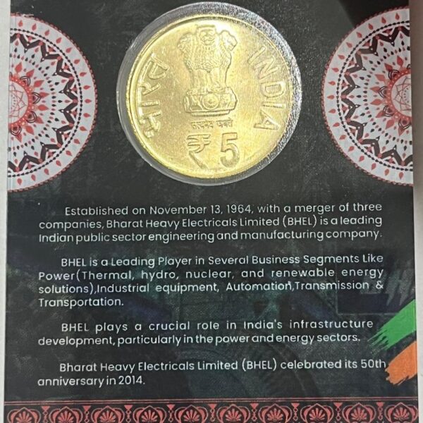 5Rs BHEL -50 YEARS OF ENGINEERING EXCELLENCE COMMEMORATIVE ISSUE RARE COIN CARD SPECIAL EDITION