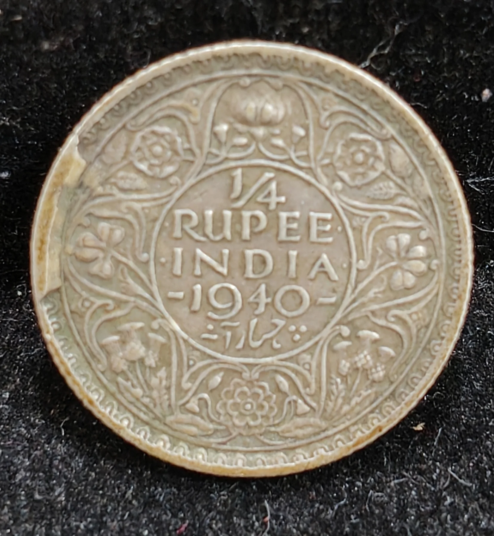 (Cud Error)Extra metal India – British ¼ Rupee 1940 – George VI Rare Silver Coin