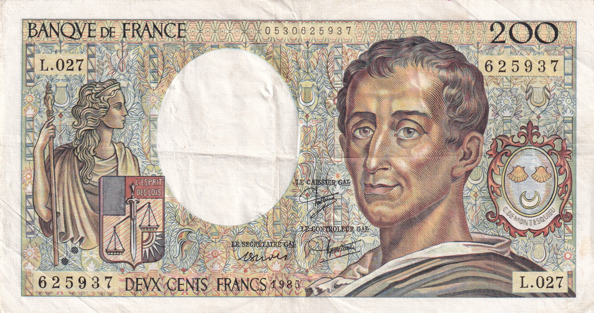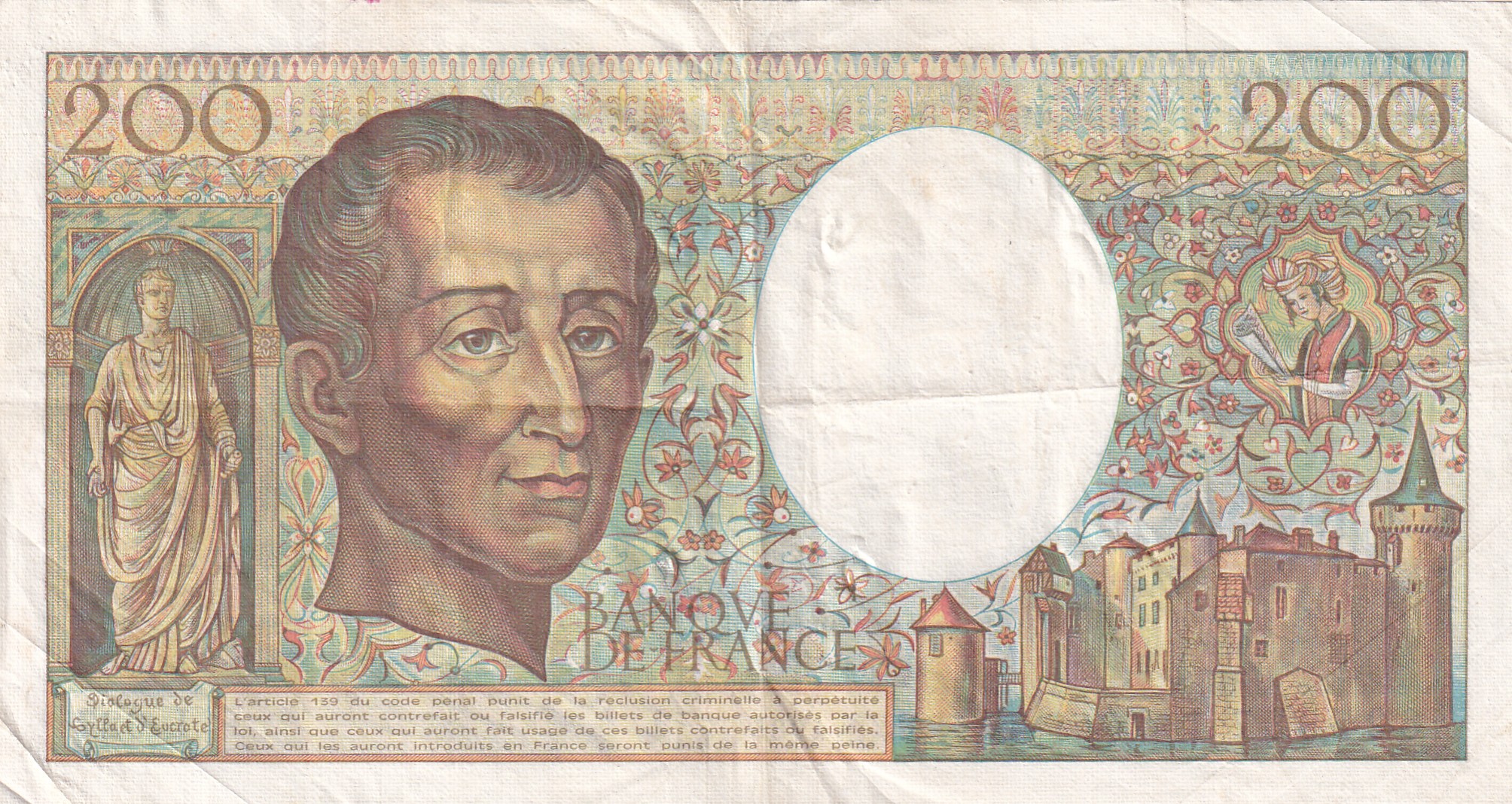 France 200 Francs (de Montesquieu) Rare Foreign Note