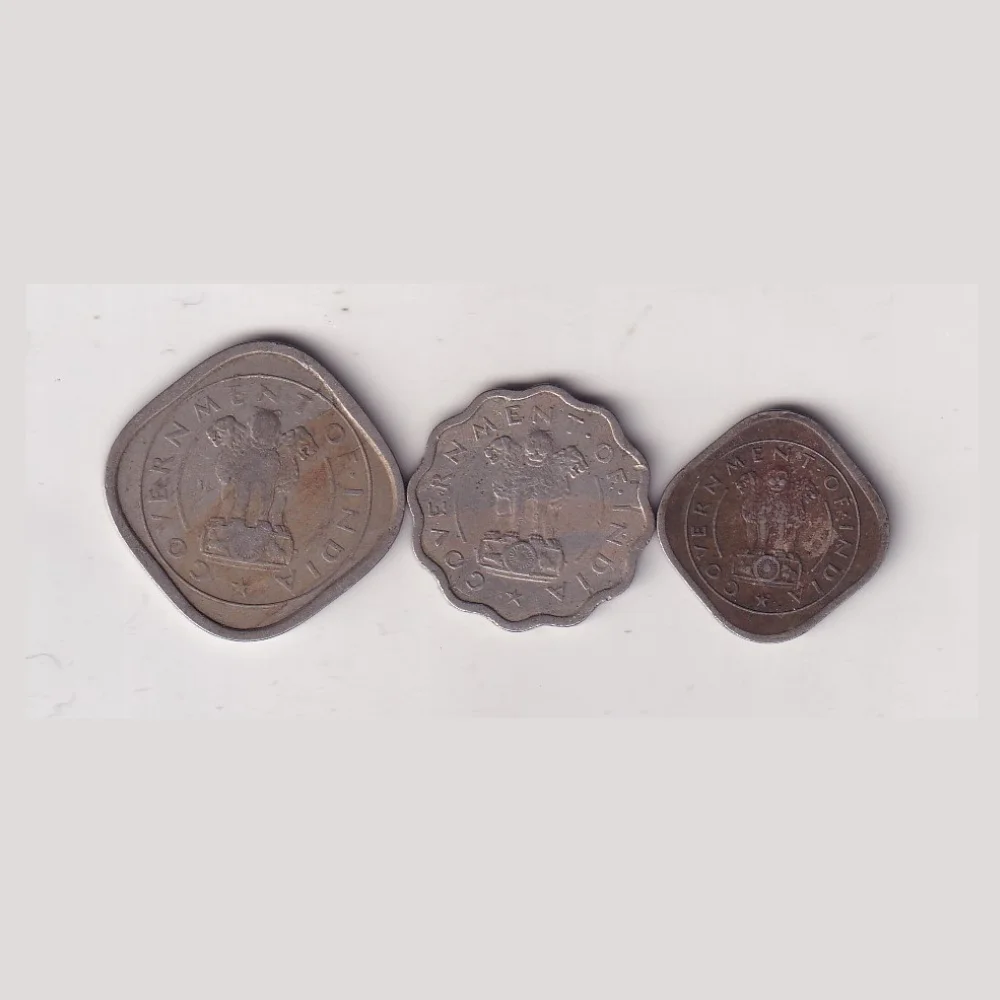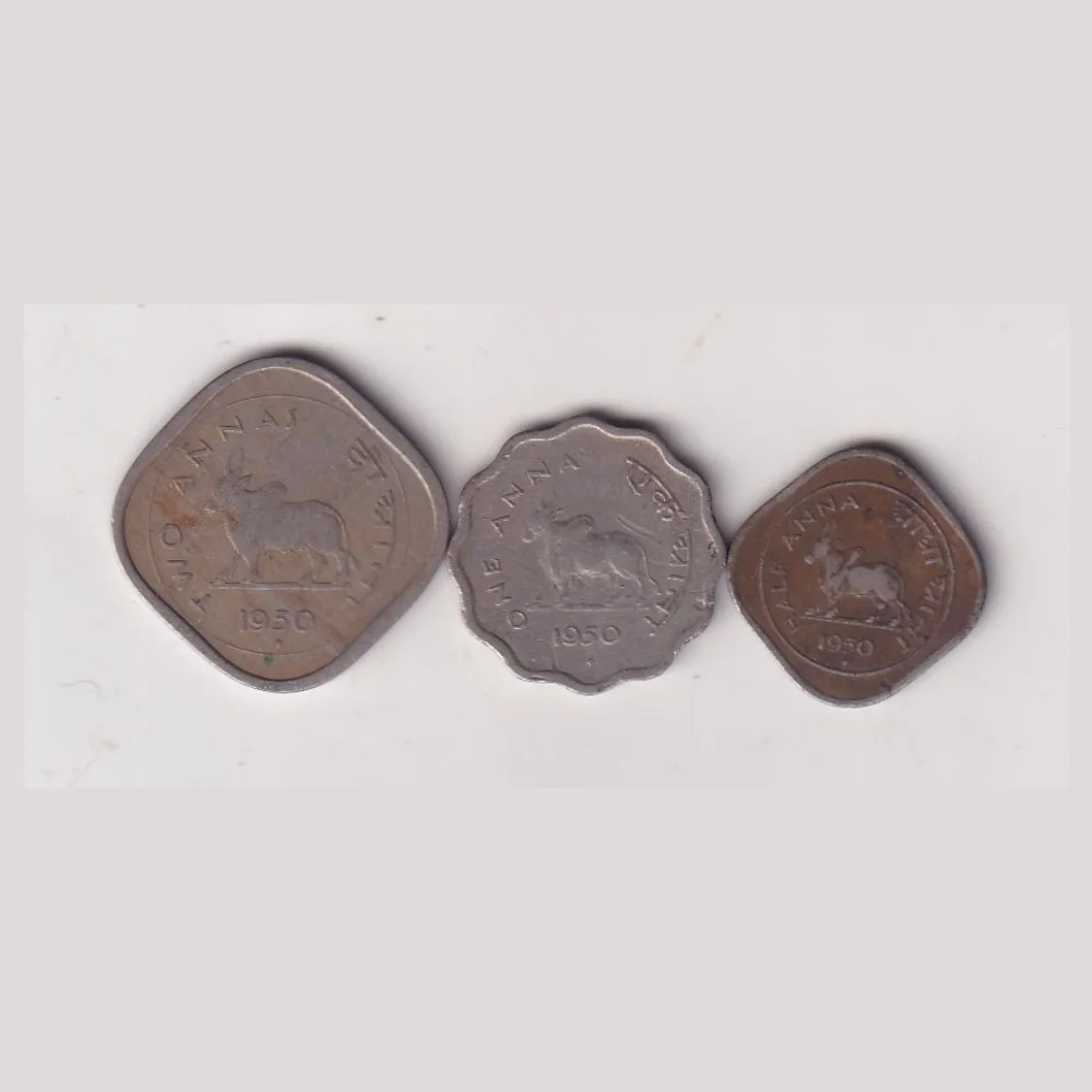 INDIA 1950 BULL (TWO ANNA, ONE ANNA, HALF ANNA) RARE 3 COIN SET