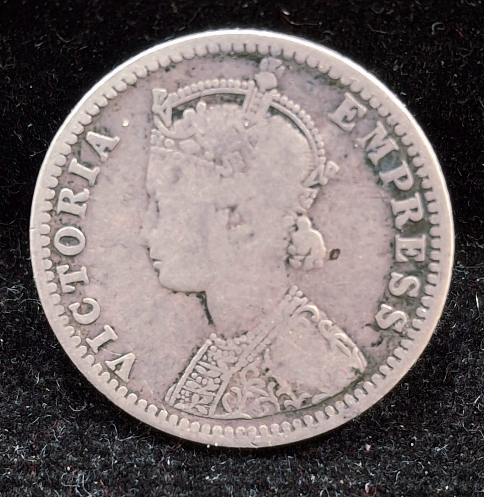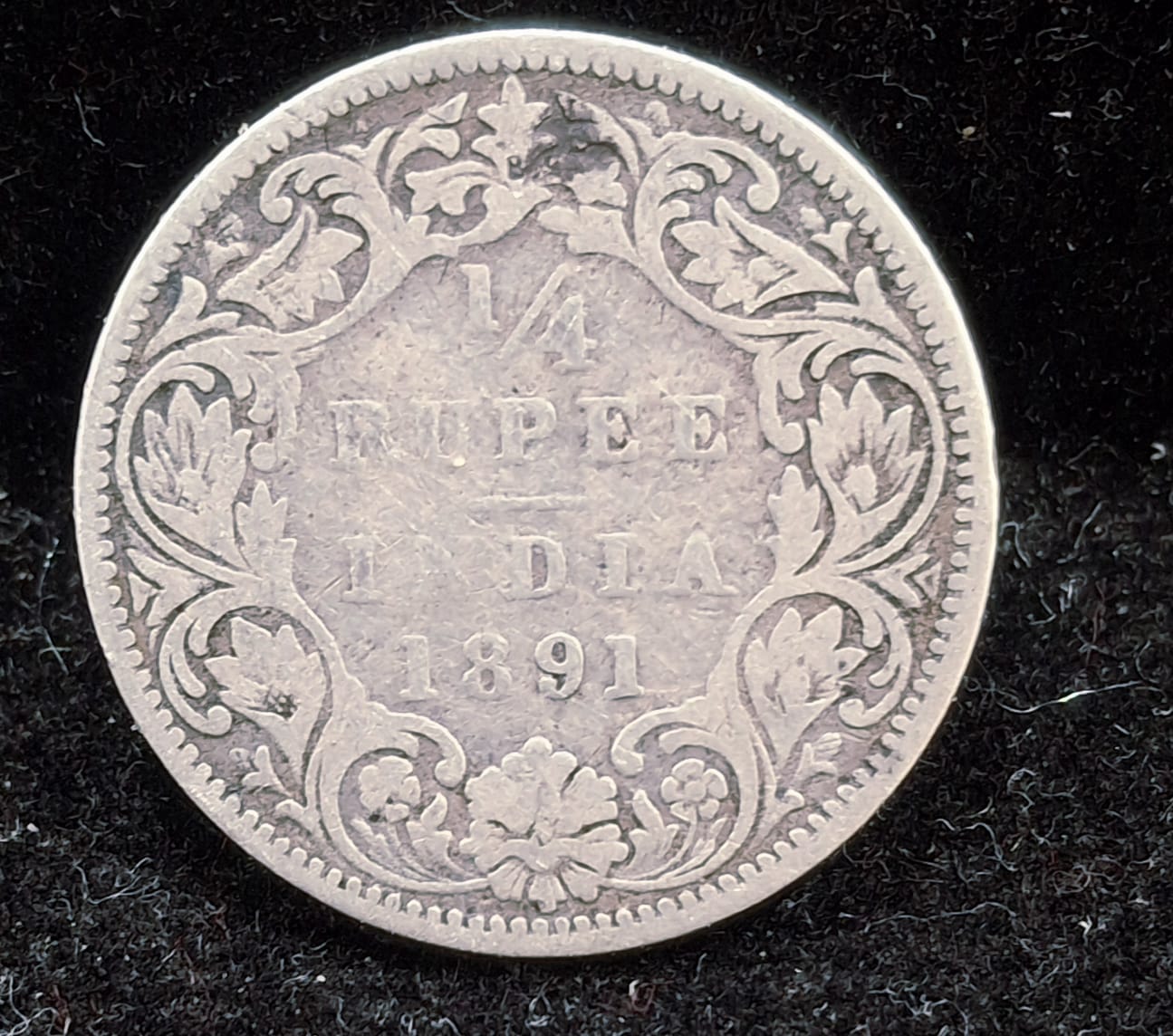India – British ¼ Rupee 1891 – Victoria Rare Silver Coin #V-95