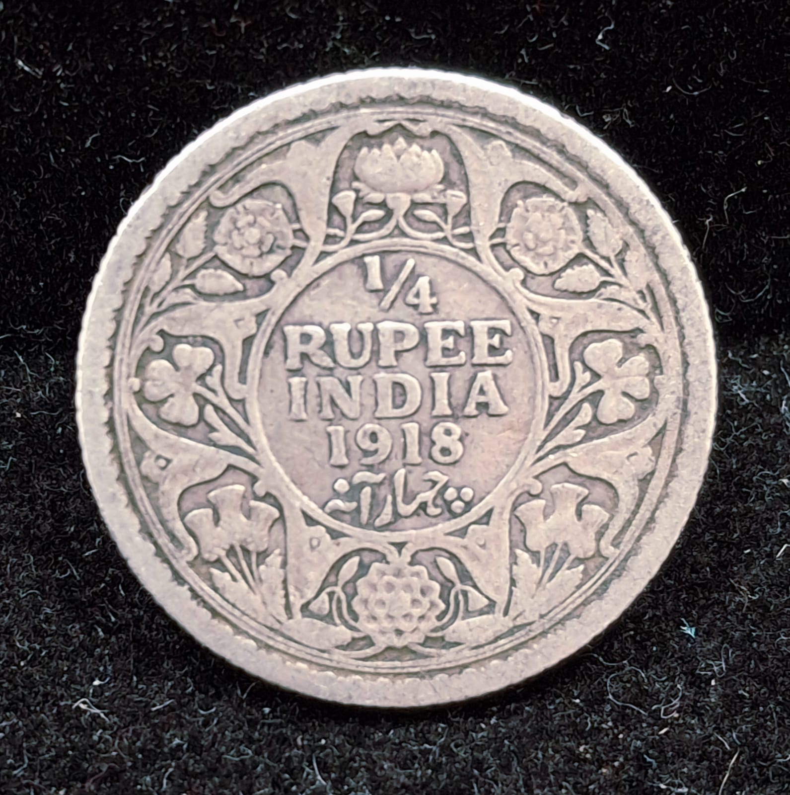 India – British ¼ Rupee 1918 – George V Rare Silver Coin #V-68