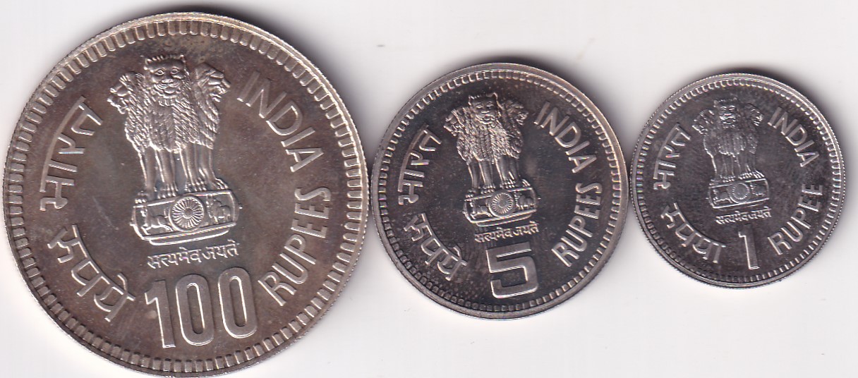 JAWAHARLAL NEHRU RARE COMMEMORATIVE UNC (3 COIN SET) INCLUDING 1 SILVER COIN