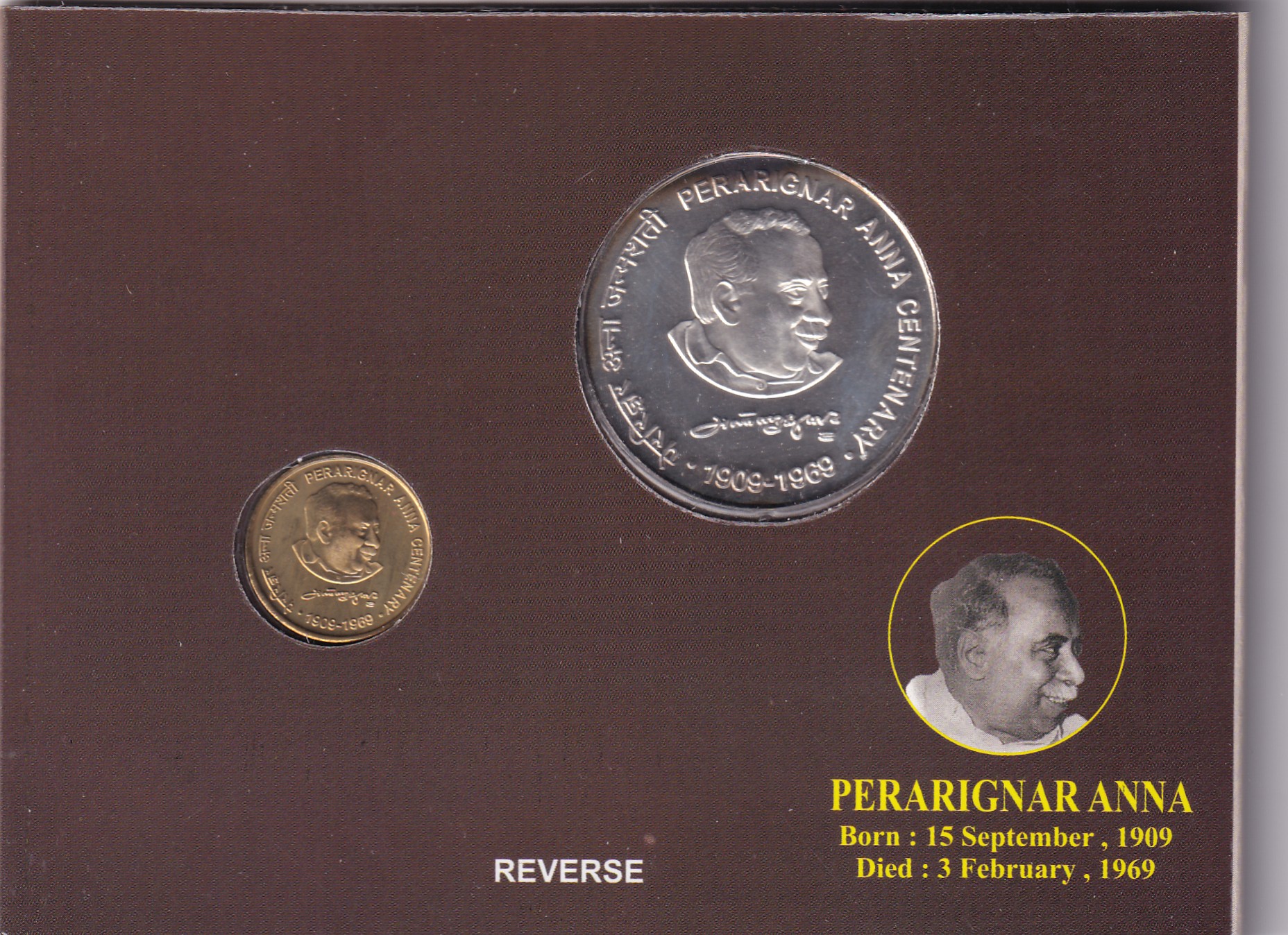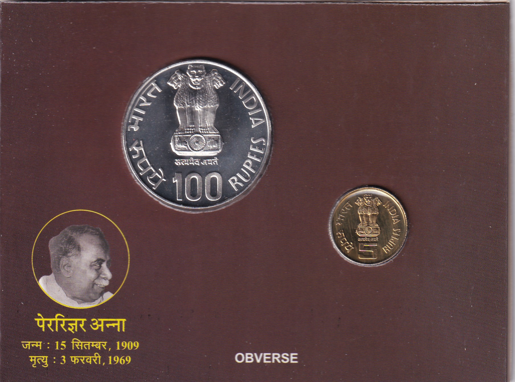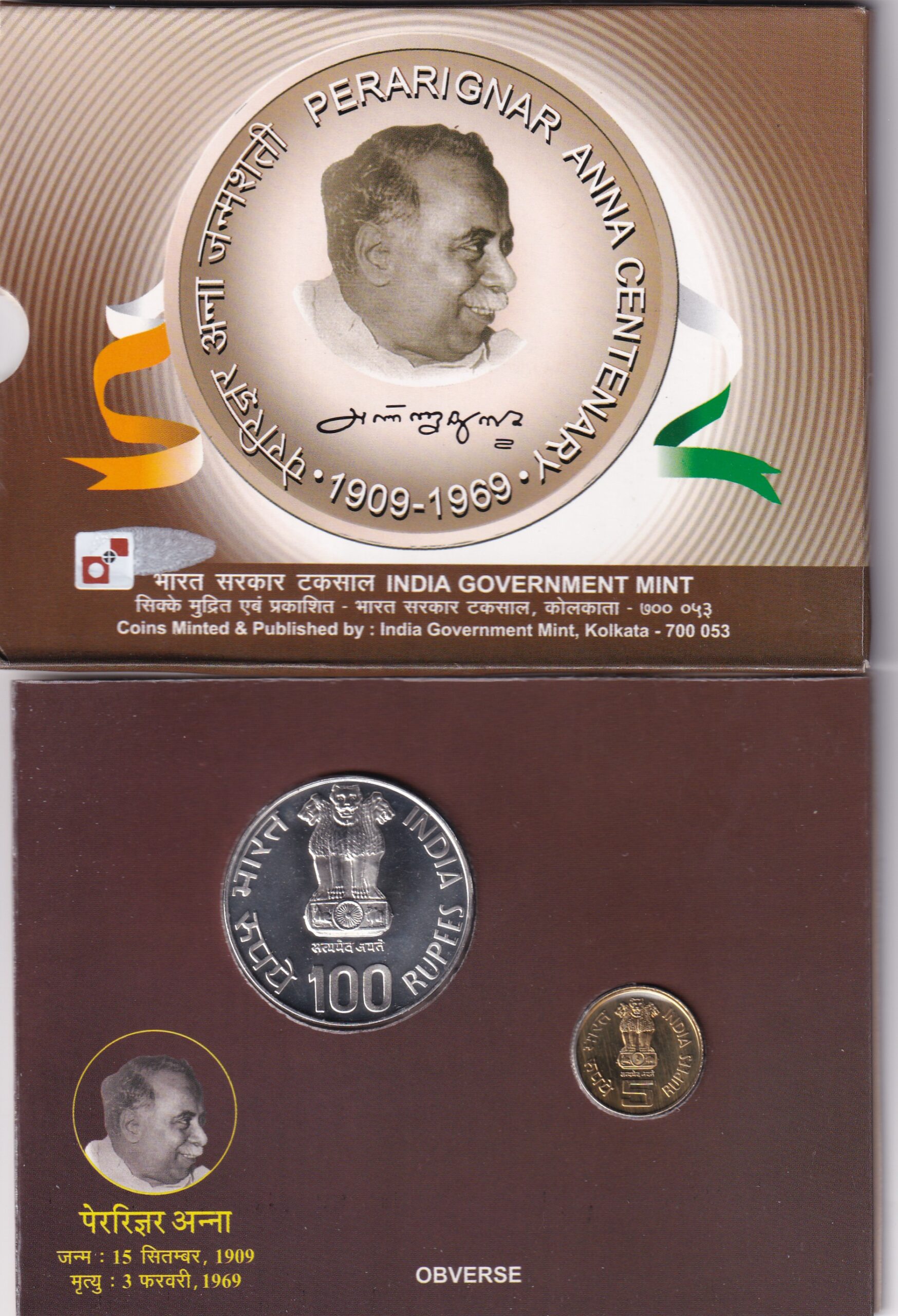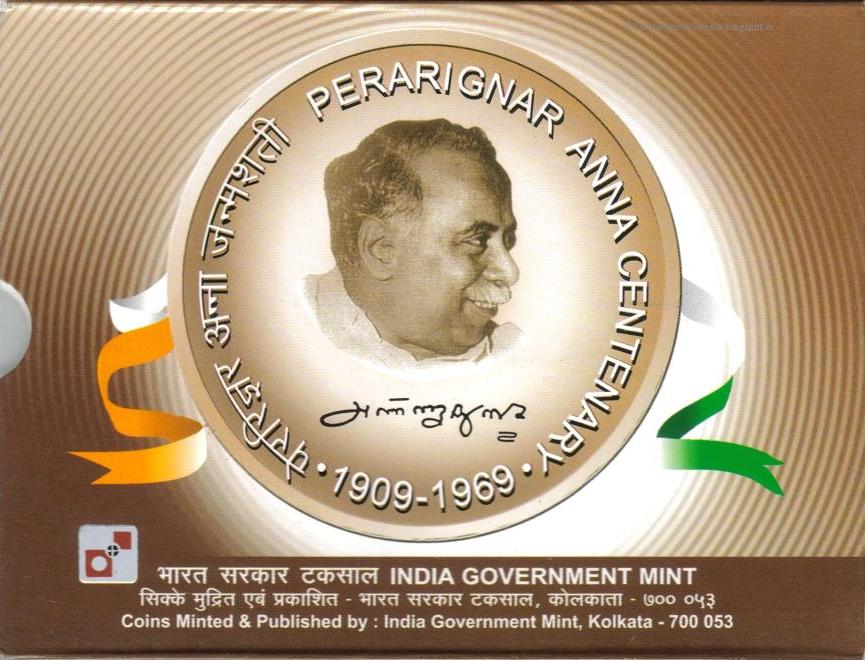 Perarignar Anna Centenary (1909-1969) Kolkata Mint (2 Coin) Unc set