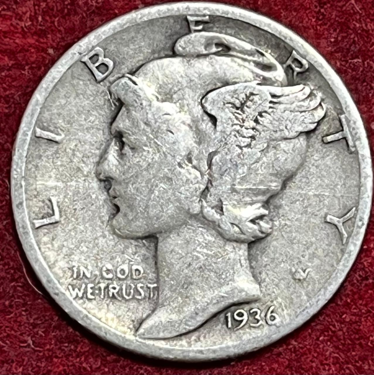 UNITED STATES 1 DIME 1936 MERCURY DIME RARE SILVER COIN #V-385
